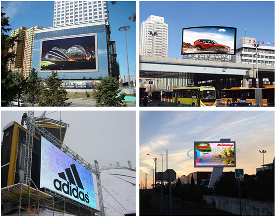 التطبيقات الأكثر شيوعًا لشاشات DIP LED هي شاشات LED الخارجية واللوحات الإعلانية الرقمية . نظرًا لمستوى سطوع عالٍ ، يمكن رؤية الشاشة حتى في ضوء الشمس الساطع.