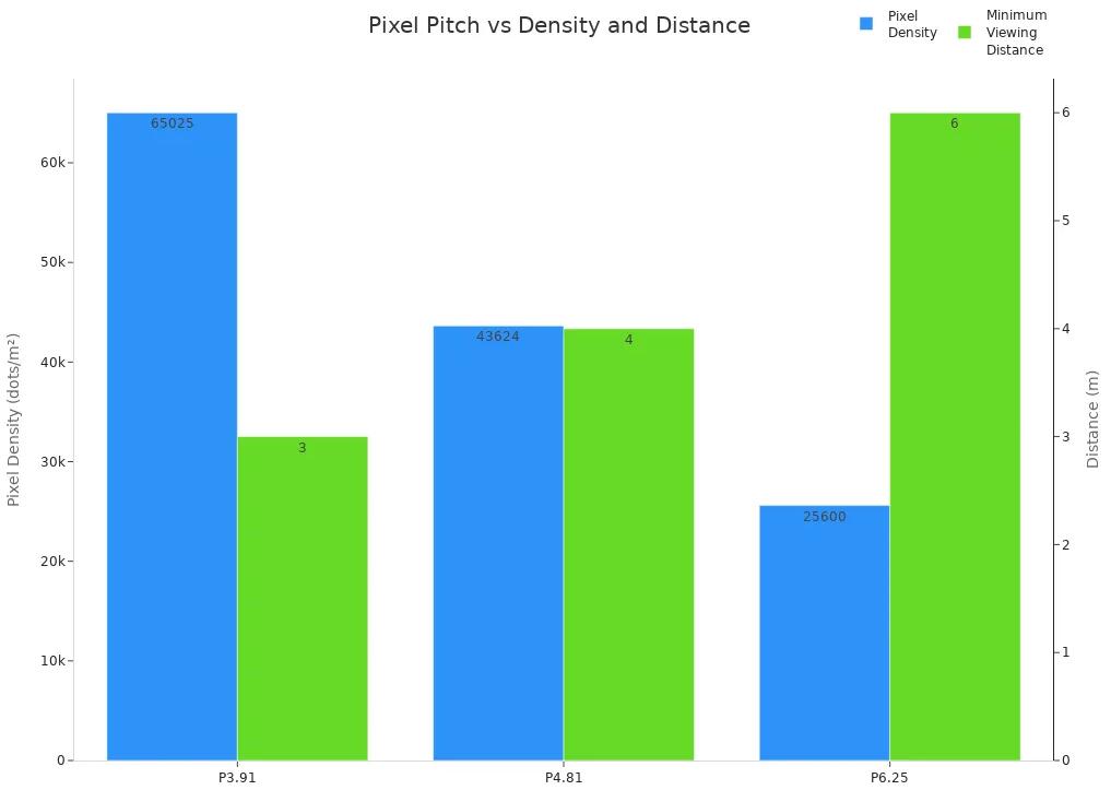 人が5メートル以上離れている場合、シンプルなグラフィックであればピクセルピッチは5mm以上が適しています。ライブショーの場合は、画像がぼやけるのを避けるために8mmを選ぶとよいでしょう。Chipshowでは様々なピクセルピッチの選択肢をご用意しており、最適なものを見つけることができます。