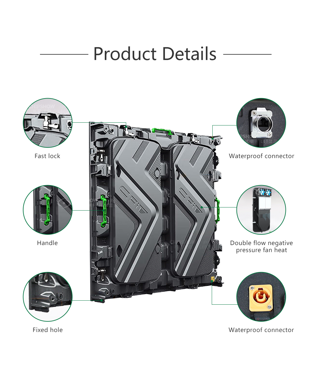 1.Fla:ADC12高強度ダイキャストアルミニウムキャビネット、変形せずに頻繁に組み立ておよび分解でき、平面度が良好です。 2.実用的:非常にシンプルで実用的なデザイン、しっかりとしたハンドル、便利な高速ロック、最もシンプルで実用的です。 3.磁気位置決め:キャビネット側面の磁気位置決めピンによる迅速かつ正確な位置決め、レンタル用の迅速かつ簡単な設置。 4.デュアルサービス:高速ロックモジュール設計、前面または背面からのメンテナンスが簡単。 5.経済的:低コスト、安​​定性と信頼性が高く、非常に費用対効果が高い。 6.50,000平方メートルを超えるグローバルホットセール。すぐに在庫があり、短納期。