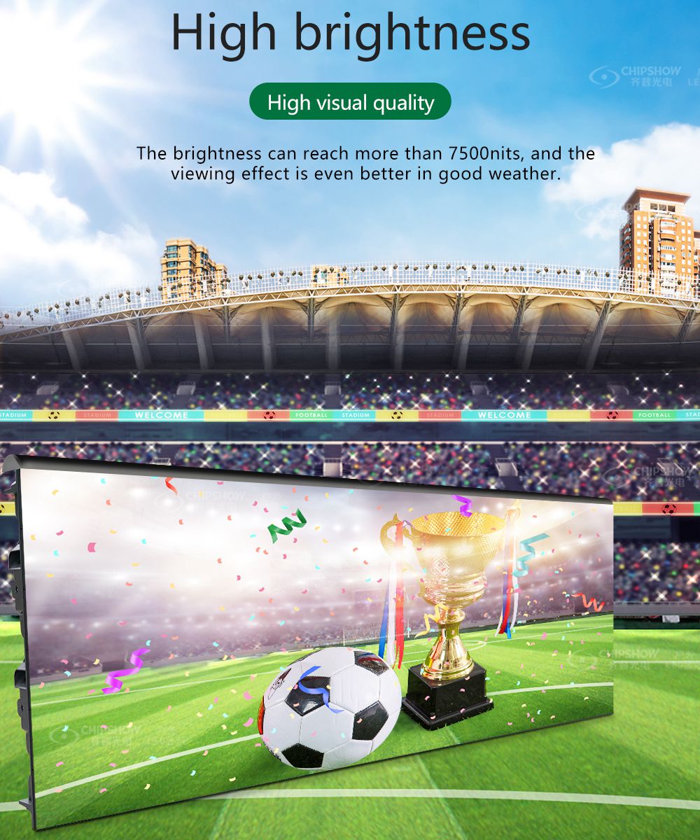 P8、P10 C-Fit-Sport LEDディスプレイは仮想交換技術を採用しています。スタジアム内の実際の広告の代わりに、仮想広告をさまざまな国に送信できます。