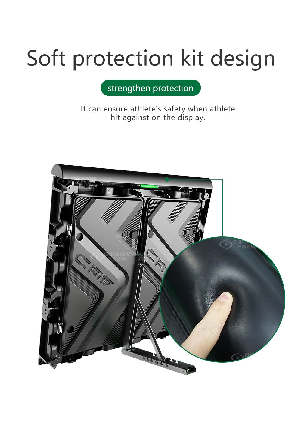 C-Sport P8 スタジアム周囲 LED スクリーンは、デジタル周囲広告に広く使用されています。 特徴: 1 すべてのキャビネットには、左右の高速ロックと、周囲ディスプレイの迅速な組み立てに便利な調整可能な 90 度回転ブラケットが装備されています。 2 すべてのスクリーンにはソフトピロープロテクターとソフト LED モジュールマスクが付属しているため、アスリートと LED スクリーンの両方を完全に保護できます。 3 アルミ製パワーボックスは軽量なだけでなく放熱性にも優れています。これにより、パワーモジュールの劣化プロセスが効果的に遅くなります。 4 すべての LED モジュールは前後サービスをサポートしているため、設置時やその後のメンテナンス時の操作が簡単になります。 5 キャビネットの前面と背面は防塵・防水仕様で、保護レベル IP65 に達します。 6 従来の LED ディスプレイ画面と比較して、Chipshow C-Sport シリーズは省エネです。エネルギー消費量は約 1/3 節約できます。これにより運用コストが大幅に削減されます。   7 この画面には、DP、HDMI、VGA、SDL、DVD などの多様なビデオ入力ソースをサポートするプロフェッショナルな周囲広告ソフトウェアも付属しています。
