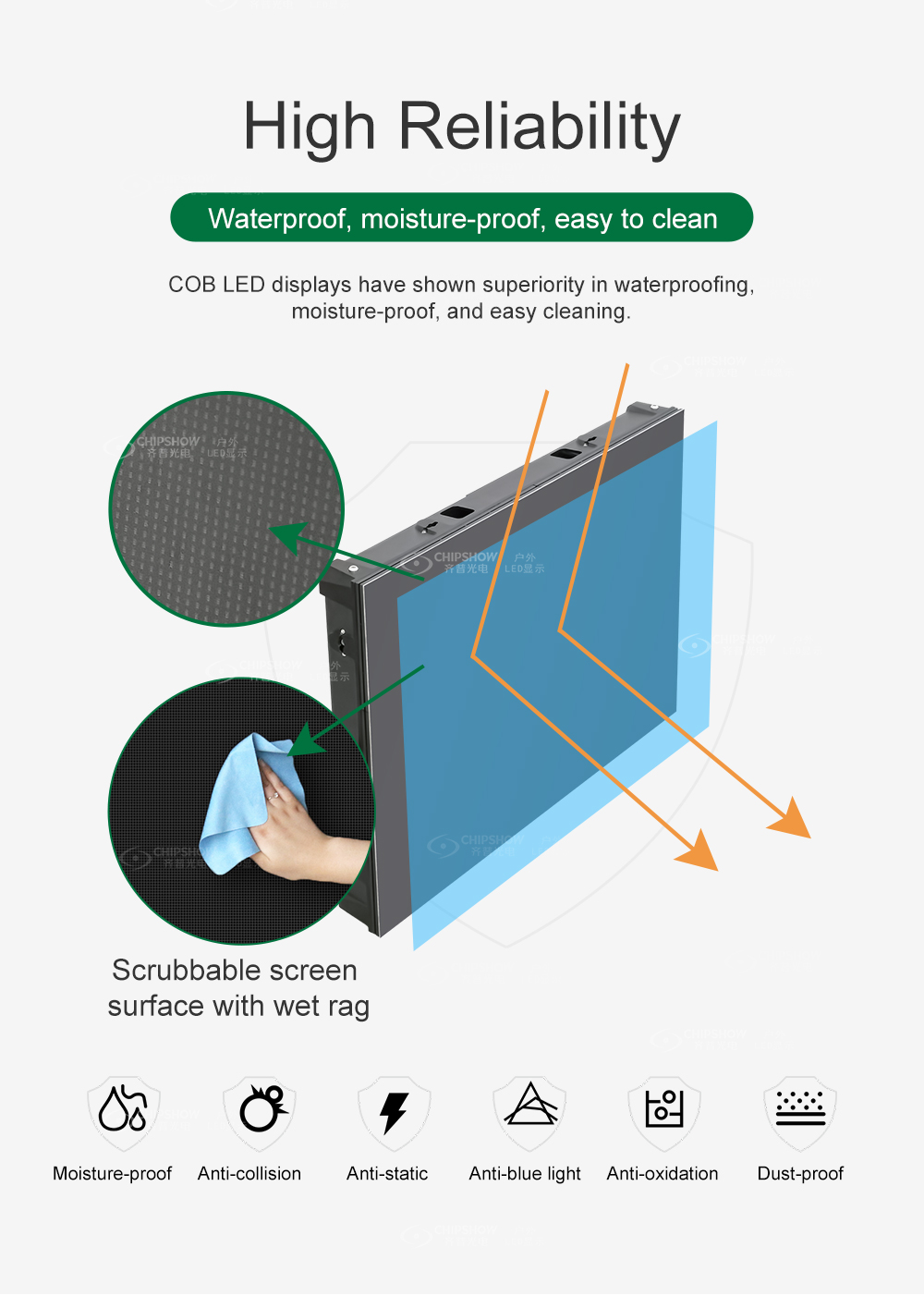 1 高い信頼性: C-Max COB シリーズ LED スクリーンは防水保護、防湿性があり、清掃が簡単です。
