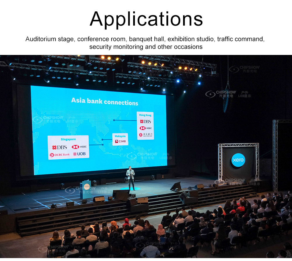 7 幅広い用途: C-Max COB シリーズは、講堂、会議室、展示ホール、CCTV センター、交通指令センターなど、さまざまな屋内シナリオに適用できます。