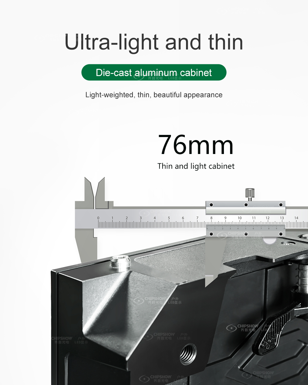 精密マグネシウム合金 タイトル: 高精度マグネシウム 本体: ダイキャストマグネシウム合金キャビネットは、鉄に比べて優れた構造安定性を備えています。この精度は、ファインピッチスクリーン(P1.2~P1.8)において、隙間のない接合と滑らかな表示面を実現するために不可欠です