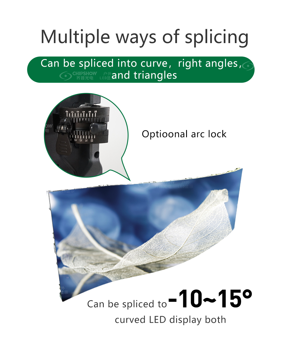 4. オプションの湾曲ロック。-10°~15°のキャンバー、90°のコーナーなどで大画面を接続できます。