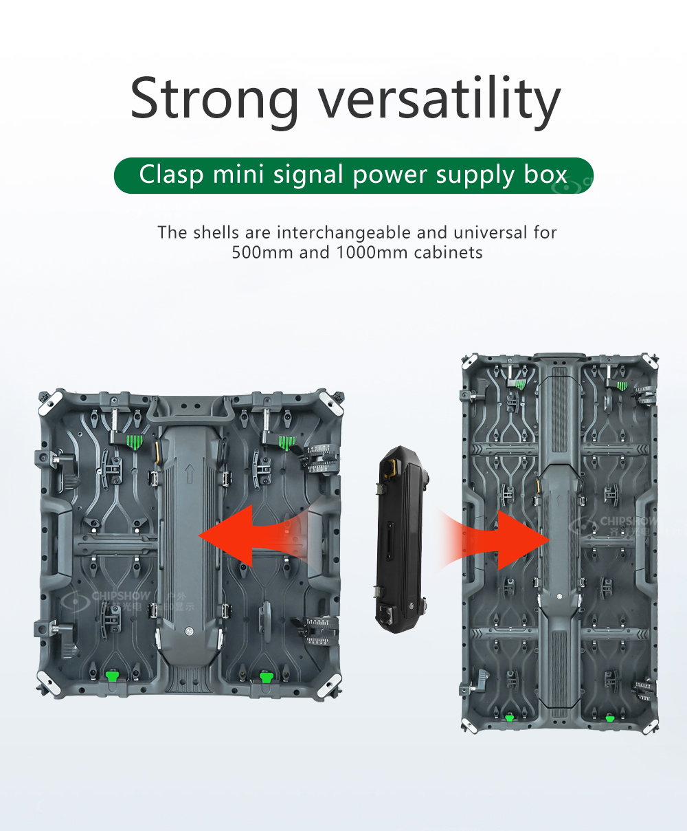C-liteシリーズは、様々なアクティビティに最適な、費用対効果の高いレンタルLEDスクリーンです。ダイカストアルミ製のキャビネットには、クイックロックと便利なケーブルコネクタが備わっており、設置・撤去が迅速かつ容易に行えます。また、スケールロックを追加することで、曲面LEDスクリーンとしてもご利用いただけます。 特徴: 1. ピクセルピッチ:2.6、2.97、3.91、4.81mm(屋外および屋内) 2. サイズ:500*500/500*1000mm 3. モジュールの磁気取り付け(屋内)、迅速な組み立て、迅速な取り外し。 4. 異なるバッチのキャビネットは同じサイズで、頑丈で耐久性があり、変形しにくいです。 5.鋳造アルミキャビネット、超高平坦度、キャビネット全体の平坦度≤0.01mm。 6. 電源とデータが高速に接続された長寿命デバイス、500,000 回の抜き差しに耐えます。 7. 操作は簡単、ワンクリックで画面が点灯します。 応用: 結婚式、会議、コンサート、発表イベント、およびあらゆる種類のアクティビティ用のレンタル スクリーン。移動式トレーラー用の LED スクリーンやスタジアムの周囲ディスプレイ スクリーンなど、モバイル ディスプレイ ソリューションおよび常設ディスプレイ ソリューションとしても使用できます。