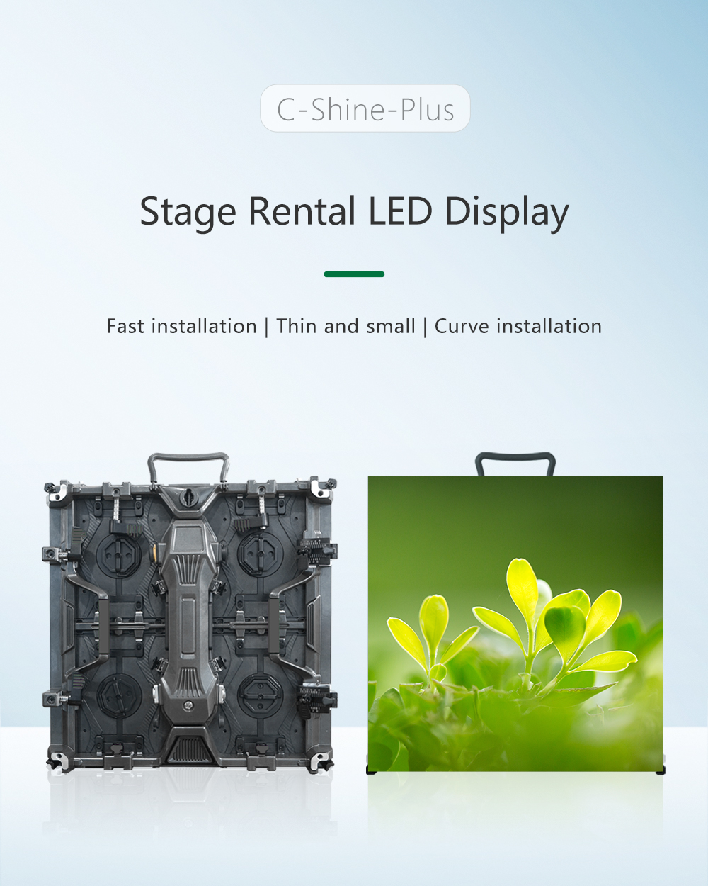 1. 優れた平坦性、優れた変形耐性:C-Shine-Plus(GOB)シリーズは、優れた平坦性と優れた変形耐性を備えた高強度アルミニウム合金グレードADC-12のダイカストアルミキャビネットを採用しています。スクリーンを頻繁に組み立てたり分解したりしても、キャビネットは平坦な状態を維持できます。2 実用的なデザイン: 実用的でシンプルという原則に従って、キャビネットは便利な高速ロックや幅広で頑丈なハンドルなどのミニマリストデザインを採用しています。3 つの磁気モジュール: モジュールの前面および背面のメンテナンスをサポートします。キャビネット間の磁気位置により、ディスプレイ画面を迅速かつ正確に組み立てることができます。4 高い保護性能: モジュールが使用する GOB カプセル化技術に加えて、キャビネットには衝突防止ラグ ボスと保護コーナーが装備されているため、スクリーンの表面は高度に保護され、設置時および輸送時の損傷を大幅に回避します。5 C-Shine-Plus(GOB)シリーズは、吊り下げ設置と地上設置をサポートしており、あらゆるレンタル設置シーンに対応する経済的で高効率なディスプレイソリューションとして、スマートなデジタルビジュアルディスプレイソリューションを求める幅広い業界(電力、軍事、公安、IT、金融、司法など)のお客様に好評をいただいております。