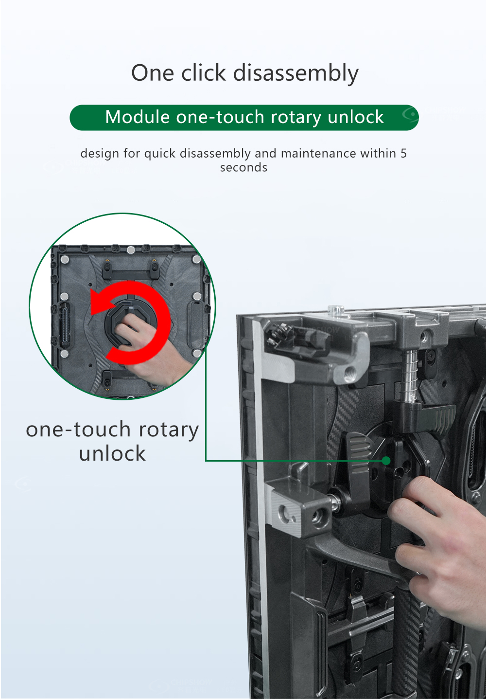 4 すべてのキャビネットは、スクリーンの素早い分解に便利なように、素早い分解コントロールボックスを採用しています。