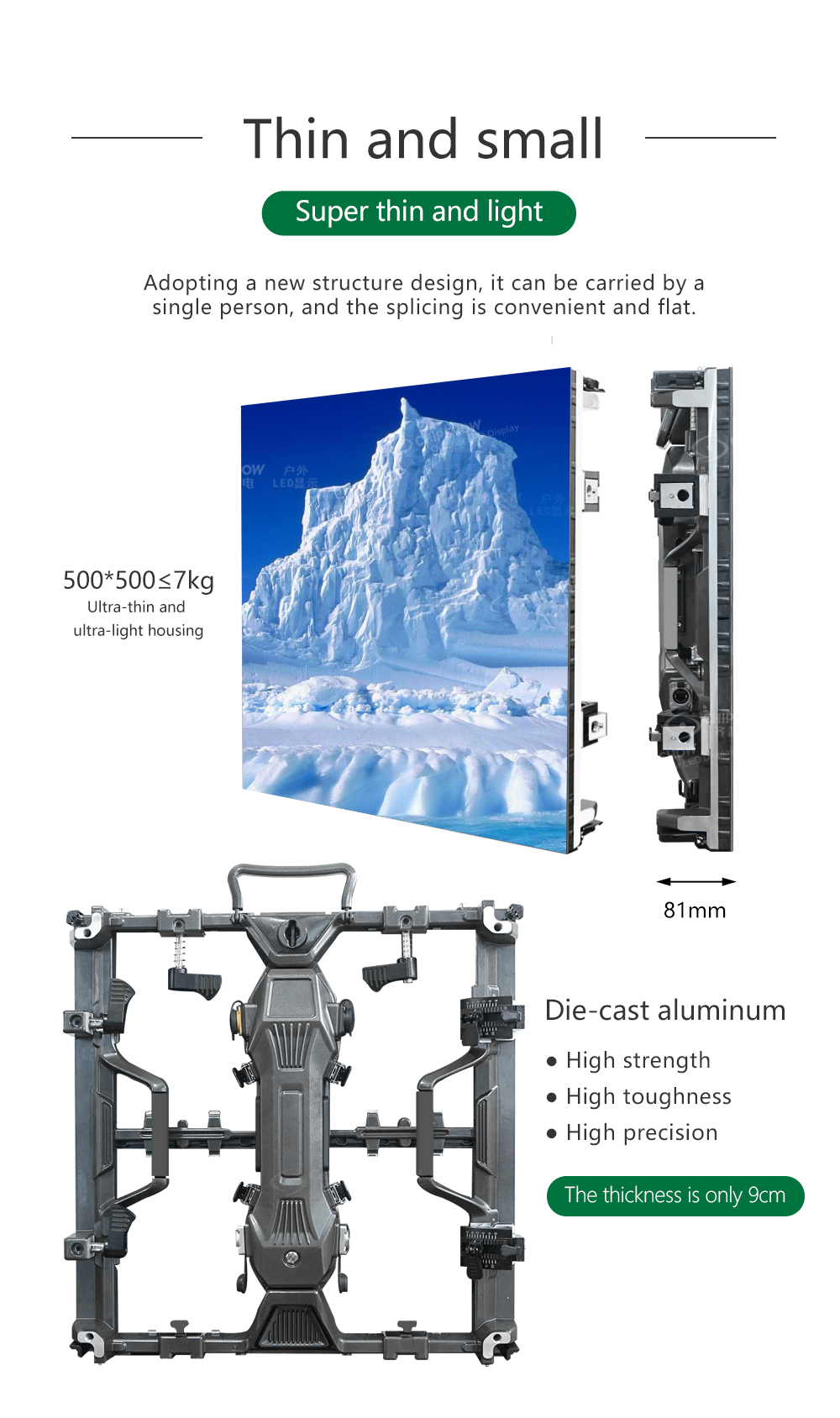 1 高精度:スクリーンは高精度ダイカストアルミキャビネットを採用しています。