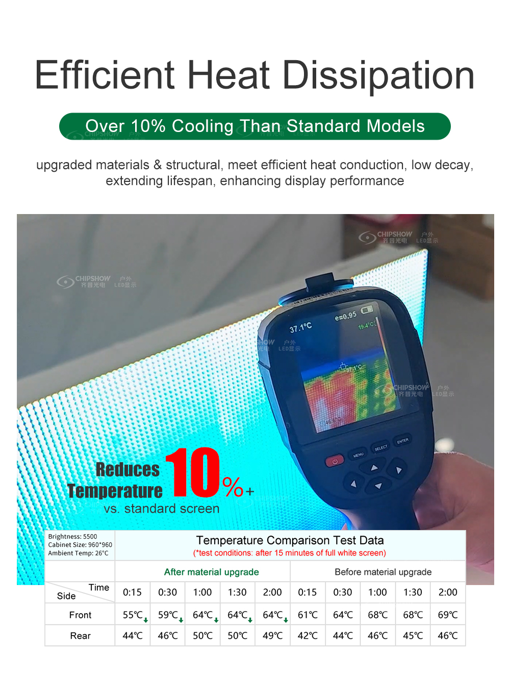 実用的な電力プロファイル :標準的な商用利用向けに最適化されており、消費電力を管理しやすい(主要モデルで最大500W/m²以下)ため、超高輝度スクリーンのエネルギープレミアムを回避できます