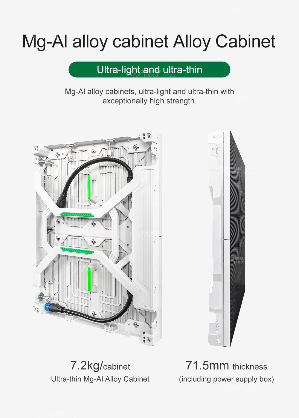 超軽量・薄型: キャビネットは強度に優れたマグネシウム合金で作られており、各キャビネット (サイズ: 480mm * 640mm) の重量はわずか 7.2KG です。