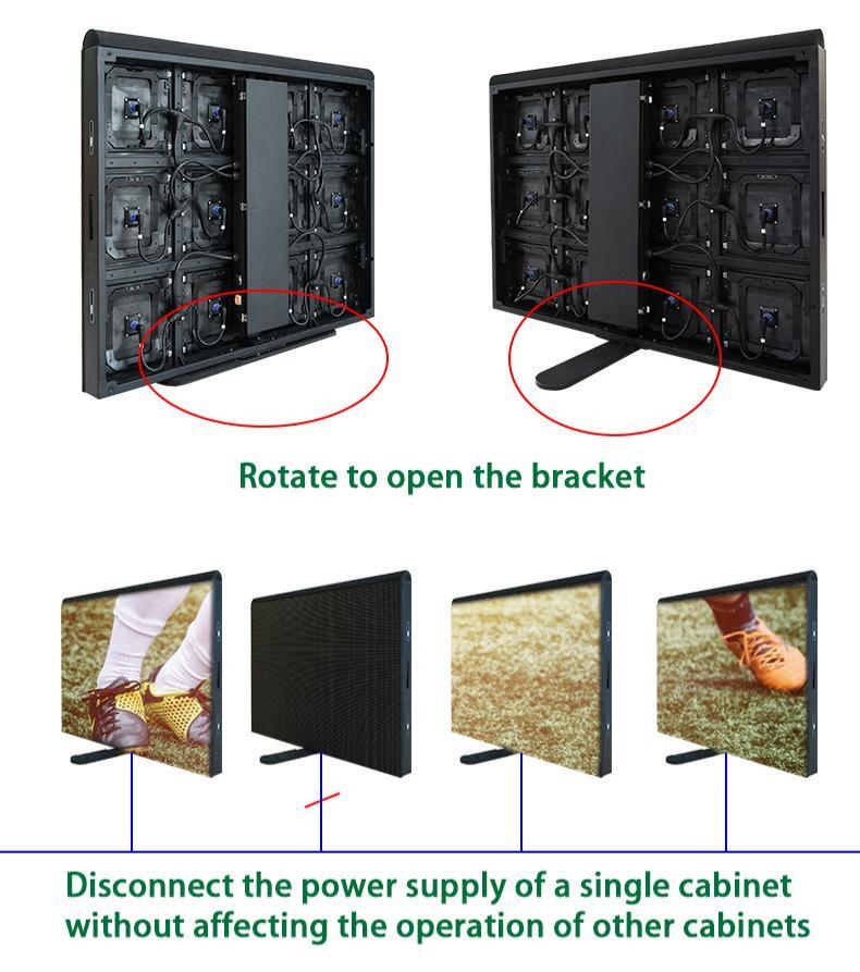 利点•新しいスタジアムベースデザイン、スクリーンと地面の間の角度は 30° から 90° まで調整でき、観客の視野角を確保します。