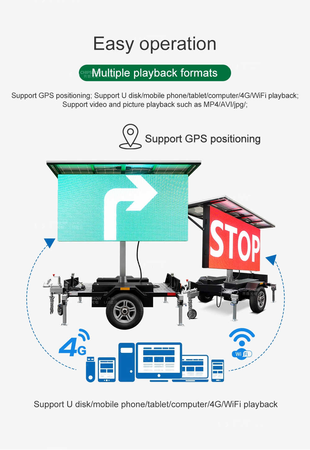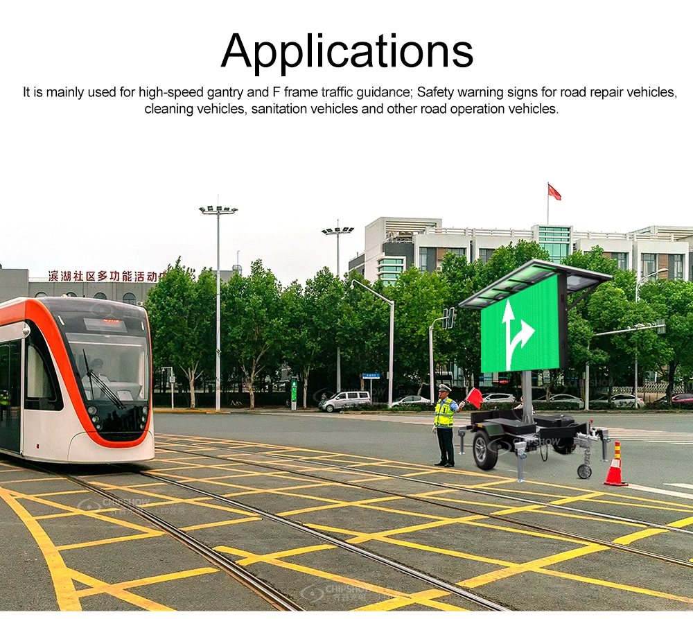 主に高速ガントリーや Fフレーム交通誘導;道路補修車両の安全警告標識、 清掃車両、衛生車両、その他の道路運営車両。