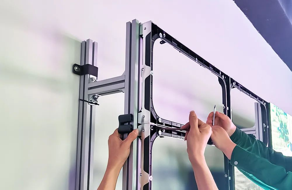 4.製品の組立・設置構造は世界標準の角管を採用しています。設置中は角筒を壁に固定し、手動組み立てでスクリーンタイルを接続するだけです。ボックスや構造を作り直す必要はありません。
