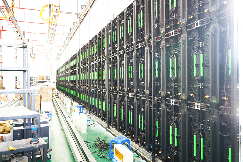 1階のエージングワークショップは1500平方メートル、6本の32 * 5メートルの自動エージングラインで、1日あたりP2〜P31.25、1か月あたり6000平方メートルのピクセルピッチのLEDディスプレイの600平方メートルの生産能力を達成できます.製品の品質を保証するために、完全なインテリジェント校正装置と校正室、自動雨装置、振動装置、高温および低温試験装置などを備えています.