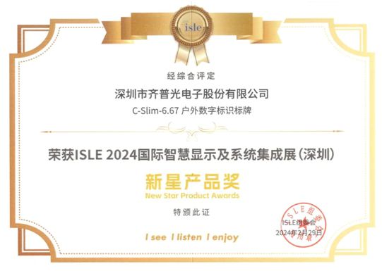C-Slim ICE ライト スクリーンが Rising Star Product Award を受賞しました。