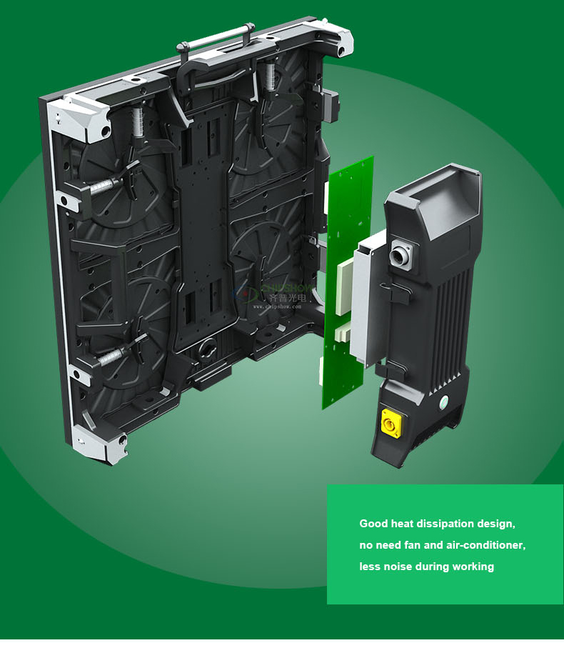 LED ディスプレイの内部にいくつかの革新的なデザインを施し、ファンやエアコンを使わずに良好な放熱を実現しました。
