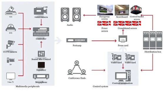 このソリューションには、LEDディスプレイスクリーンとその周辺補助システム機器、ソフトウェアとハードウェアが含まれます。ソフトウェアとハードウェアの有機的な統合により、相互接続と協調制御が実現され、複数のシーン、複数のスクリーン、複数のデバイス、複数のシステム、複数の信号の集中制御と連携制御が満たされ、簡素化された柔軟な業務運営のニーズが満たされ、スポーツイベントの情報化とスポーツ会場のインテリジェントな構築に役立ちます。